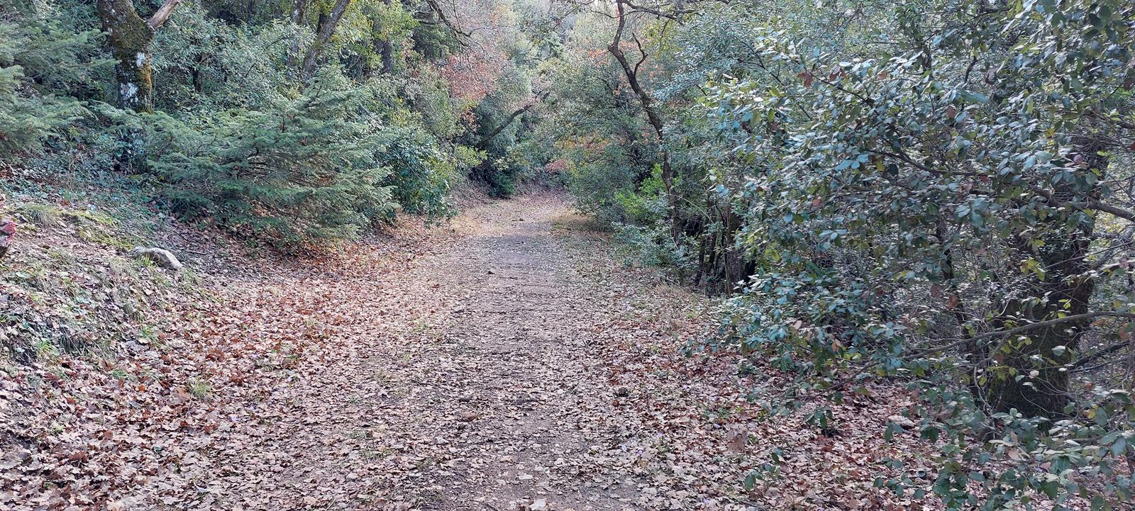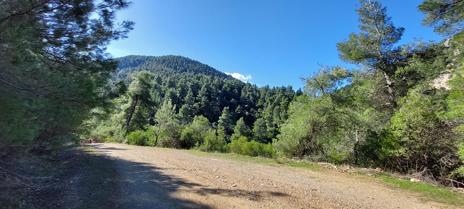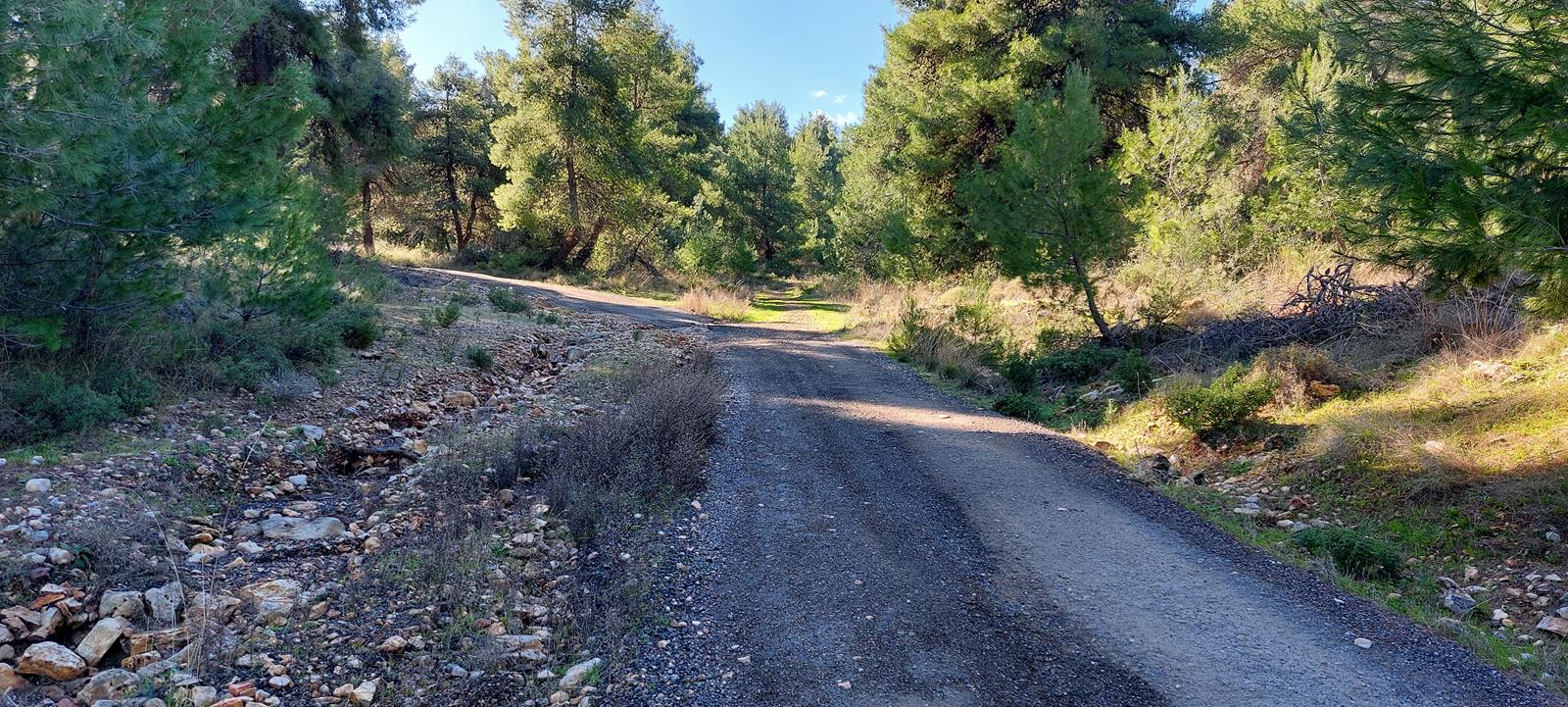 Κυρίως σε δασικό δρόμο και σε δασικά μονοπάτια. Κυκλική Διαδρομή.