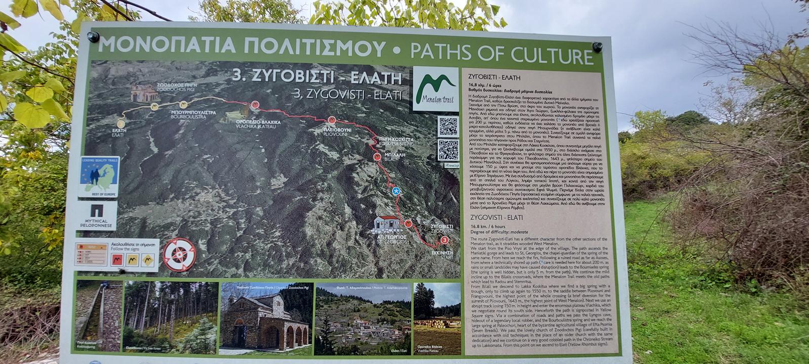 Πεζοπορούμε στις κατάφυτες πλαγιές του Μαινάλου και γνωρίζουμε δυο από τα ομορφότερα χωριά της Αρκαδίας. Το Ζυγοβίστι και το αρχοντοχώρι της Αρκαδίας, την Στεμνίτσα. Η διαδρομή μας αποτελεί τμήμα του διεθνώς αναγνωρισμένου και πιστοποιημένου Mainalon Trail και ξεκινά έξω από το χωριό Ζυγοβίστι για να καταλήξει μέσα στην Στεμνίτσα.