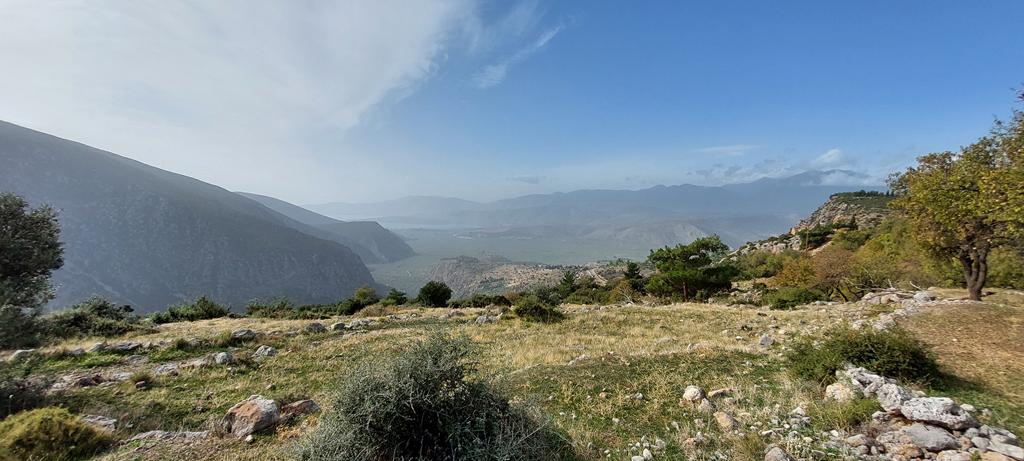Κατηφορίζοντας προς Κίρρα, η θέα από την Ιτέα, τους Δελφούς και την Αράχωβα είναι κάτι το μοναδικό.