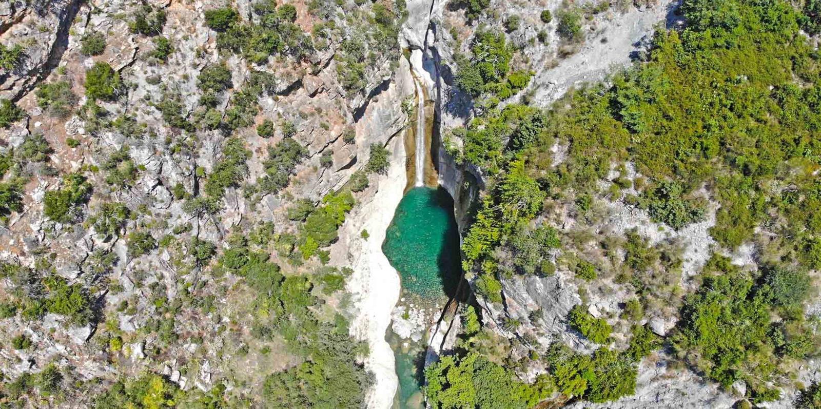 Μια εντυπωσιακή διαδρομή σπάνιου φυσικού κάλους η οποία ολοκληρώνεται με το μαγευτικό τοπίο των κρυστάλλινων νερών της βάθρας, του ύψους 25 μέτρων, καταρράκτη του ποταμού.