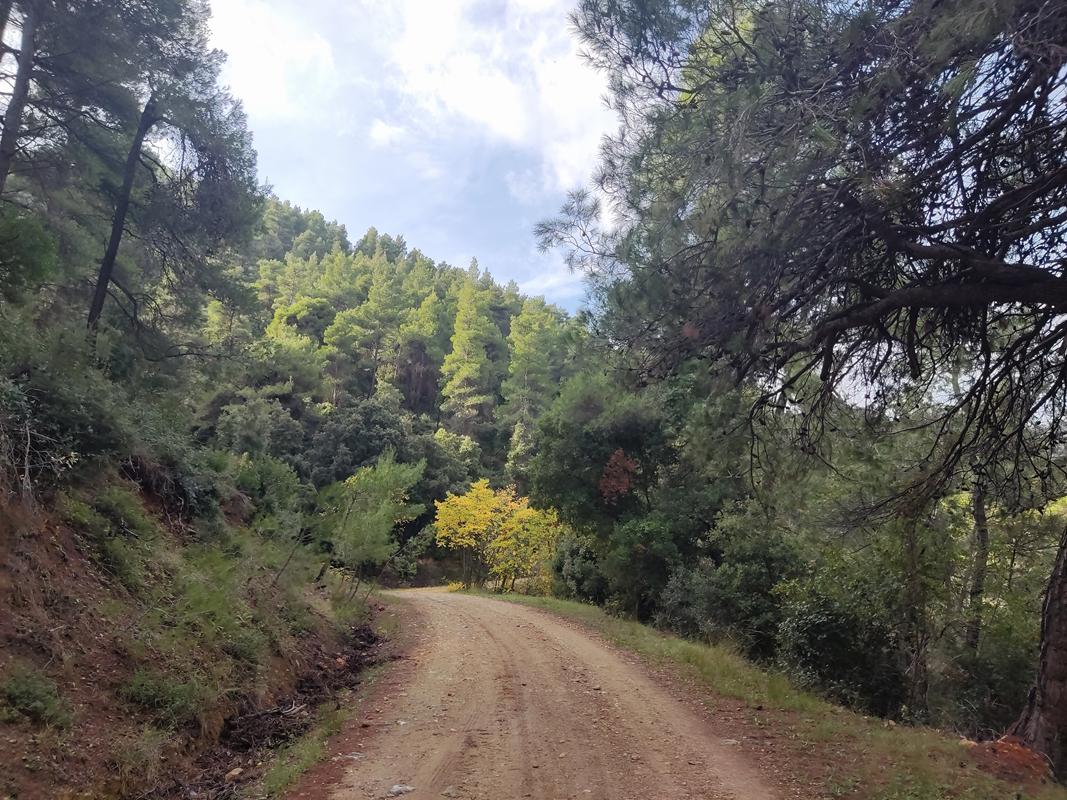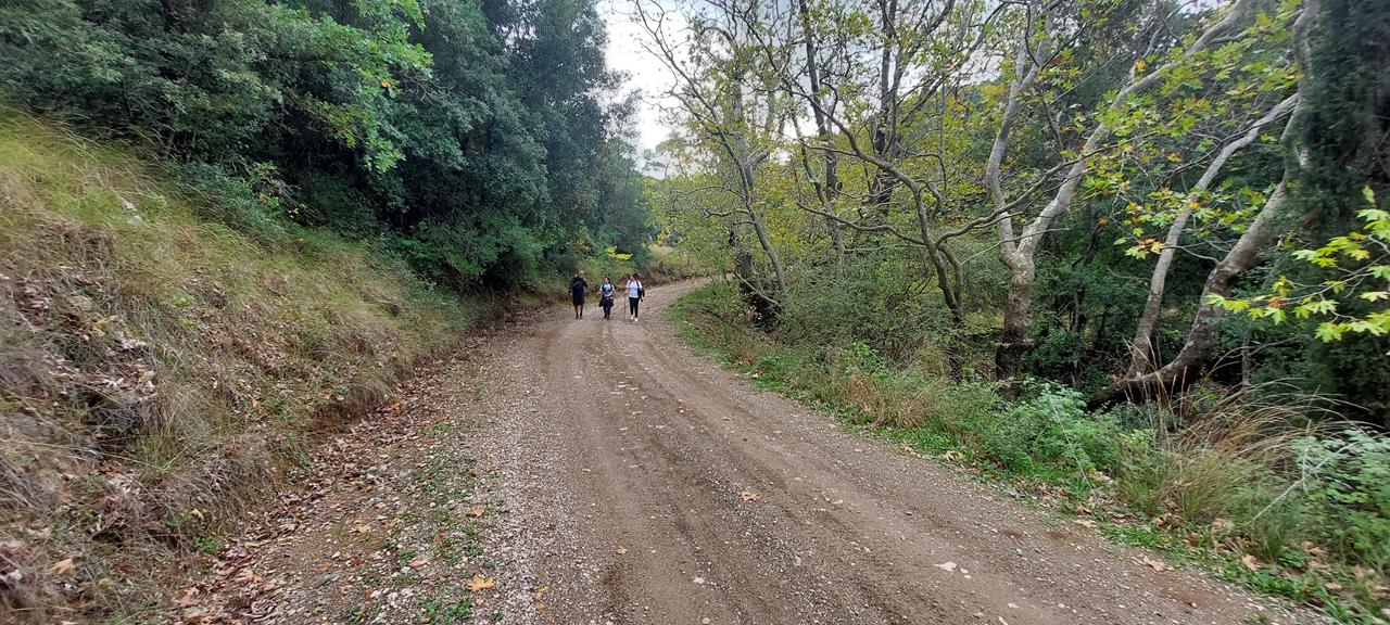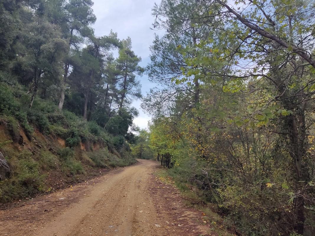 Κυρίως σε δασικό δρόμο και σε δασικά μονοπάτια. Κυκλική Διαδρομή.