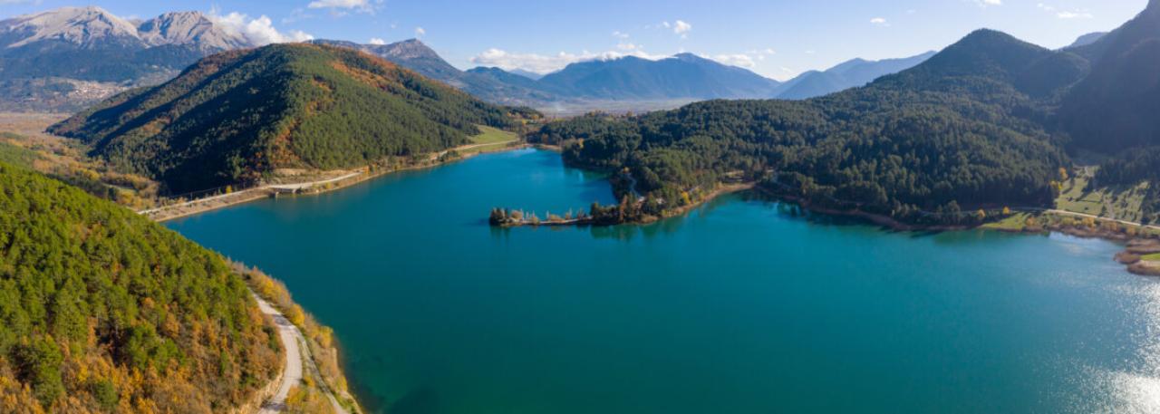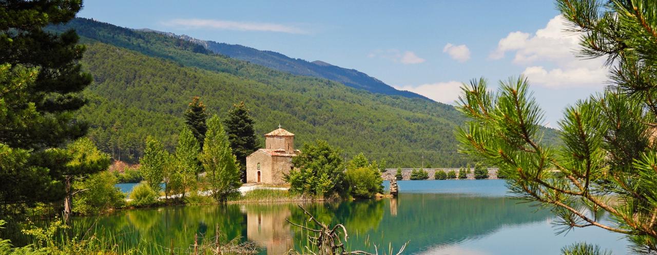 Σε υψόμετρο 900 μέτρων, η πανέμορφη αυτή τεχνητή λίμνη, περιστοιχίζεται από έλατα, βελανιδιές, πεύκα και δρυς και φιλοξενεί το περίφημο Μοναστήρι Αγίου Γεωργίου Φενεού το οποίο και θα επισκεφθούμε.
