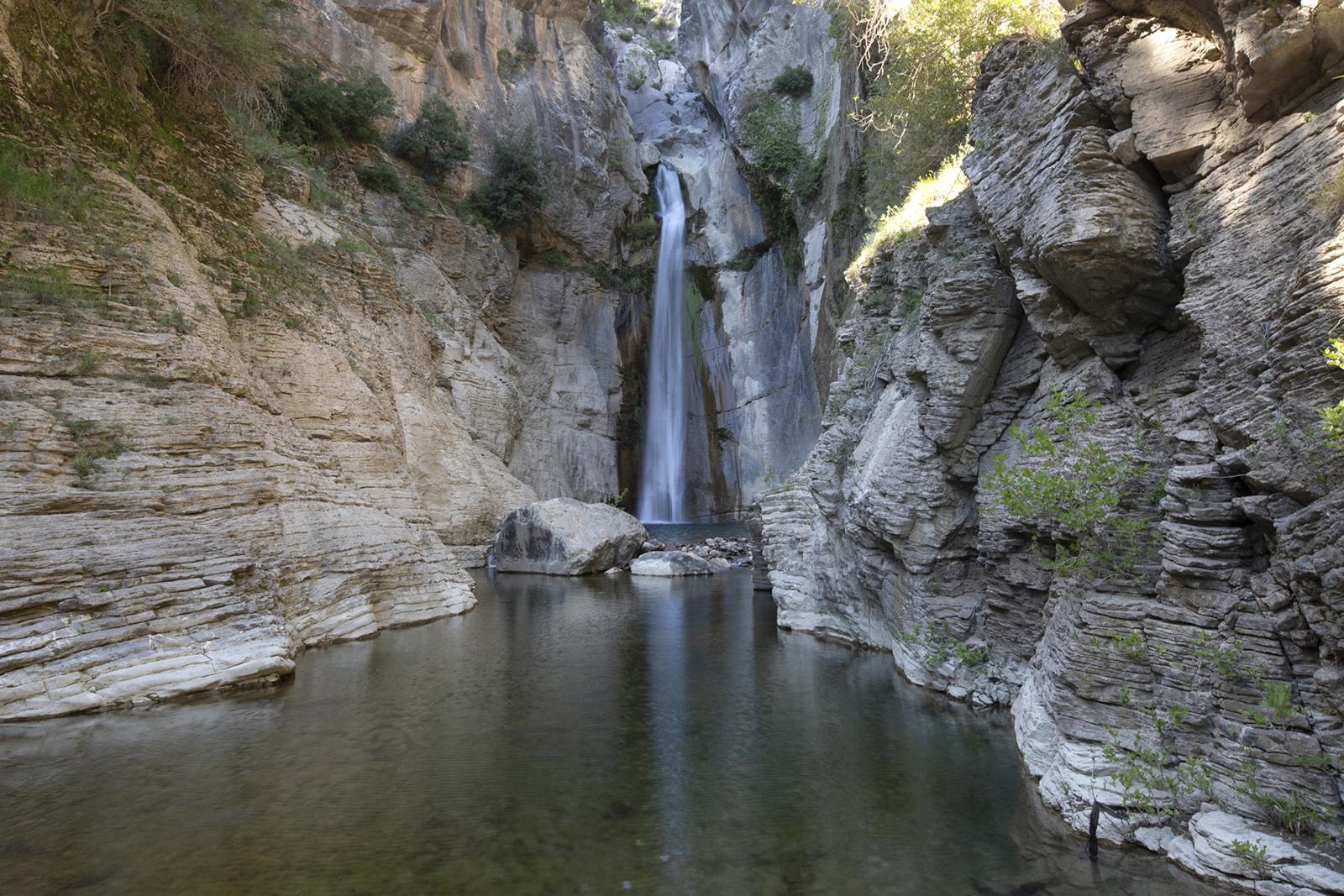 Μια σύντομη και βατή διαδρομή που ξεκινά λίγο έξω από ένα χωριό της Κύμης Ευβοίας και καταλήγει στη φυσική λίμνη (βάθρα) του καταρράκτη. Θα συνδυαστεί με μπάνιο σε παραλία της Κύμης στα καταγάλανα νερά του Αιγαίου.
