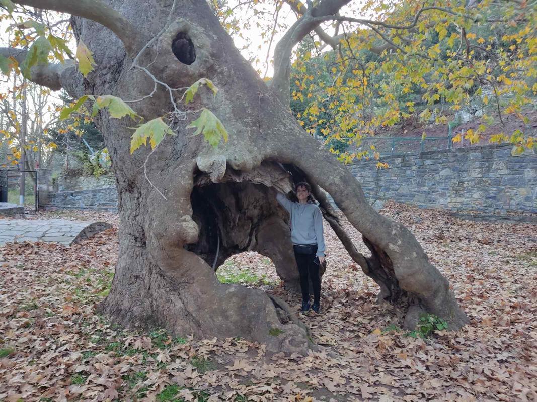 Σε υψόμετρο 950 μέτρων, μέσα από το χωριό Καρυές, ακολουθούμε δασικό μονοπάτι πλημμυρισμένο από καρυδιές, καστανιές, έλατα, πεύκα και βελανιδιές.