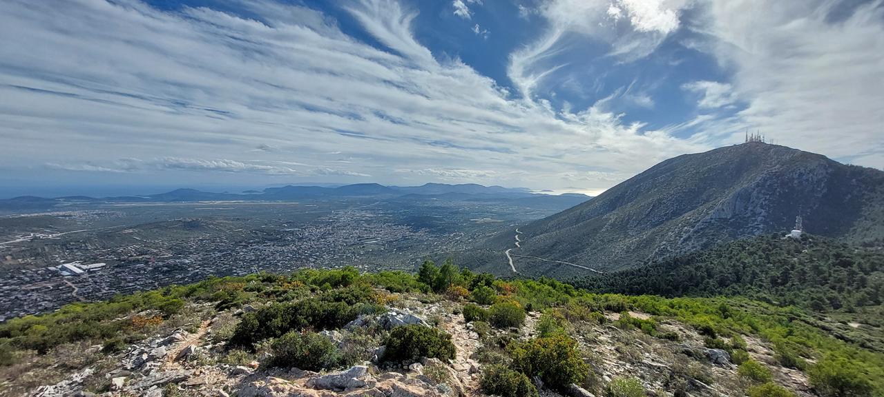 Η απίστευτη περιμετρική θέα (360 μοίρες) του λεκανοπεδίου της Αττικής από το Κορακοβούνι, είναι το στοιχείο εκείνο το οποίο προσδίδει την ιδιαιτερότητα στην πεζοπορία μας αυτή. Μια θέα που κόβει την ανάσα και σπανίζει.